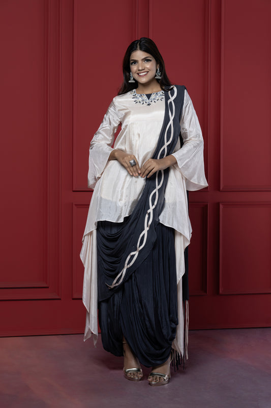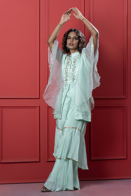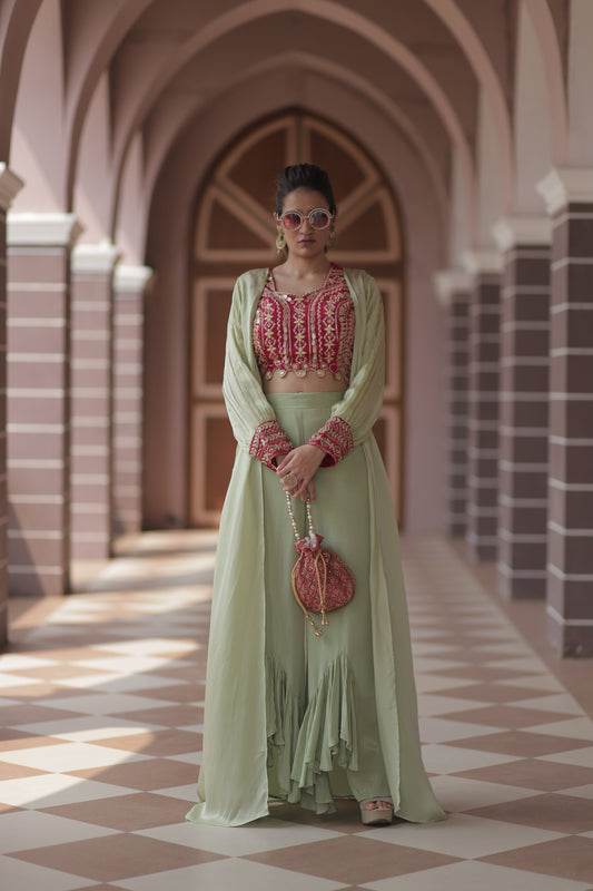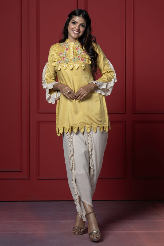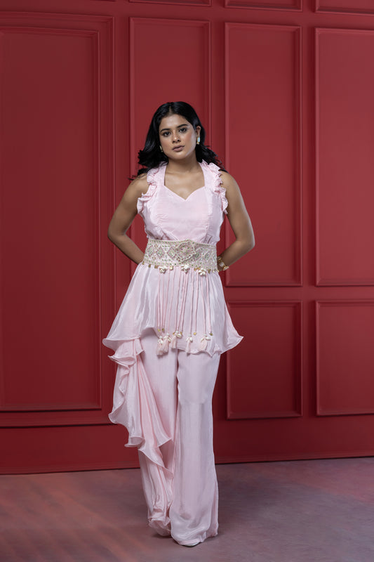 بلوزة شيبوري مع بلوزة مزينة بالكشكشة