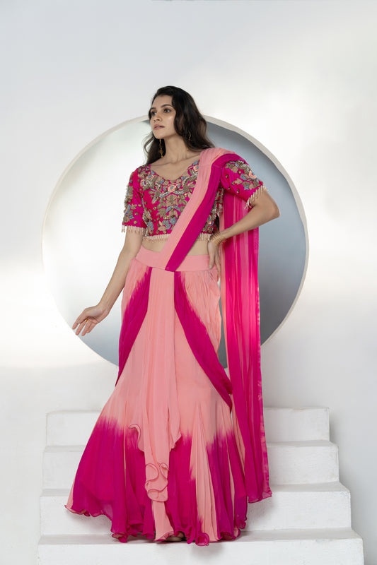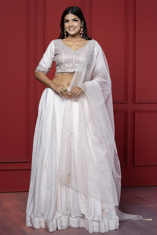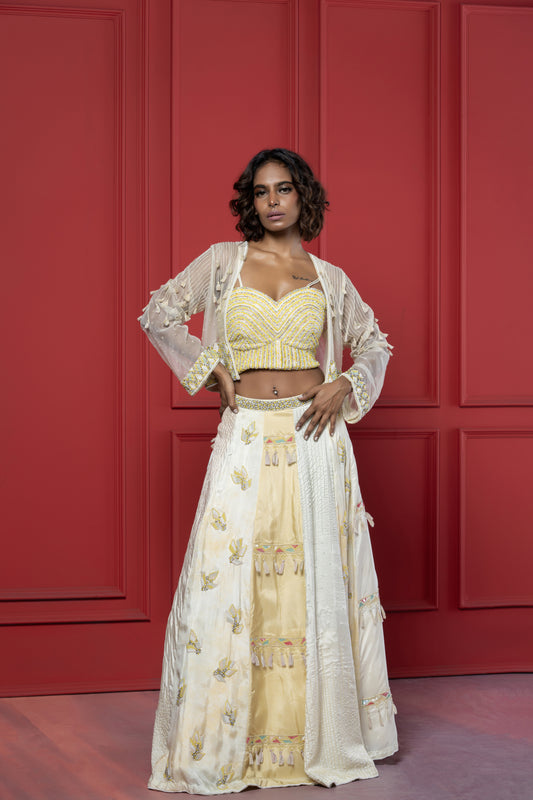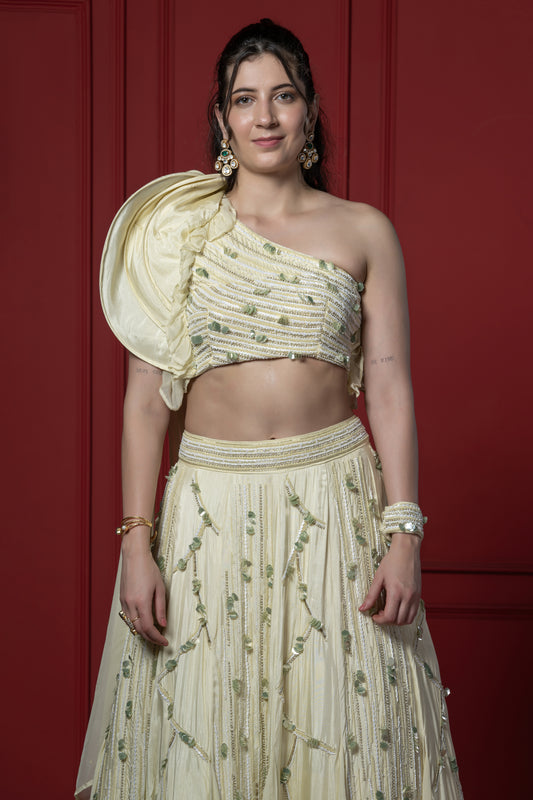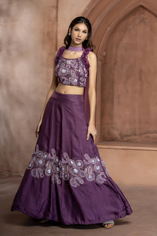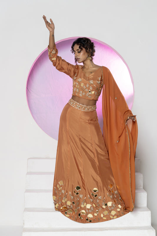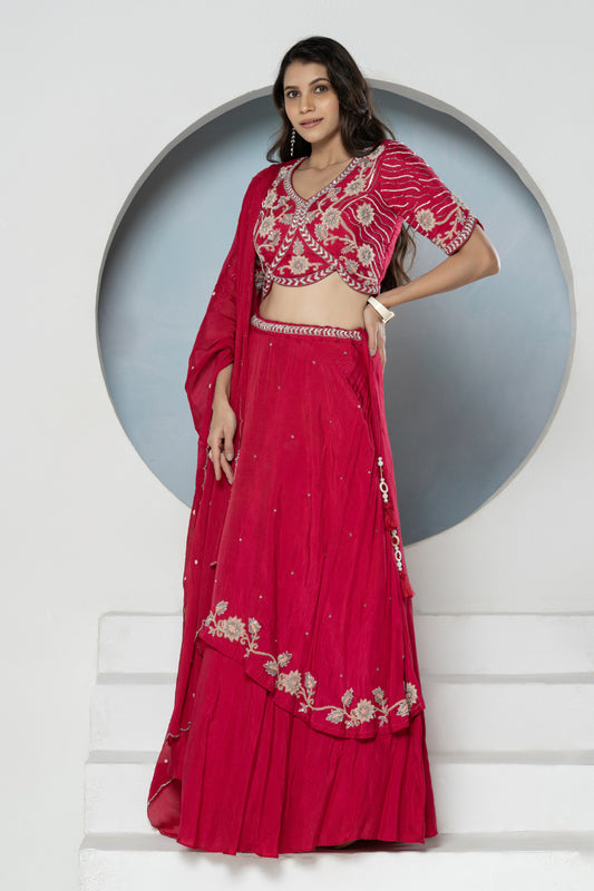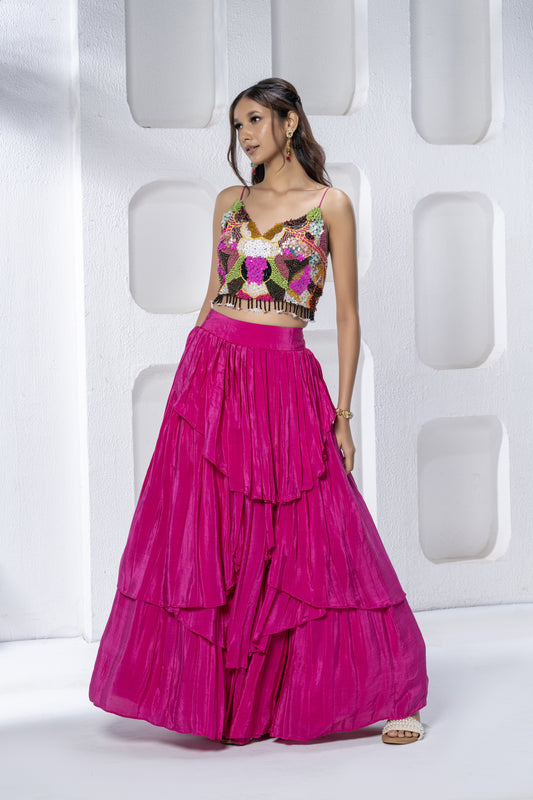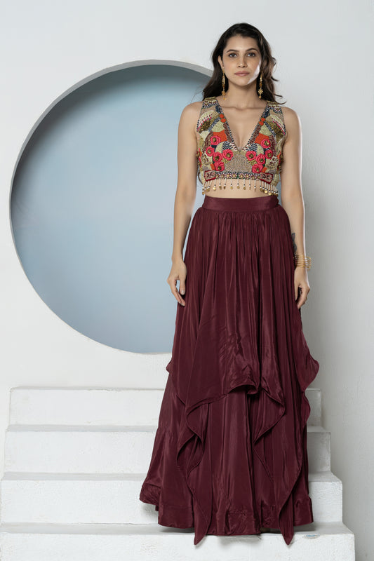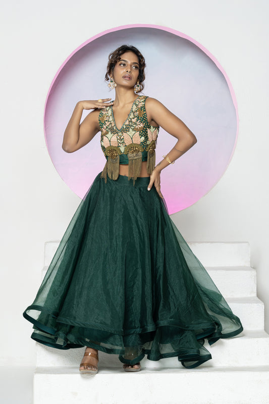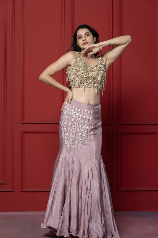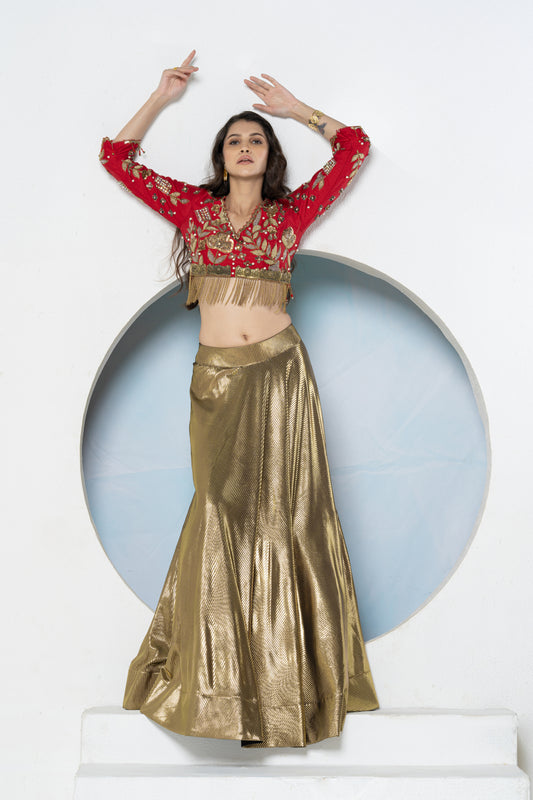تنورة ليهنغا مطرزة بكثافة مع عظم