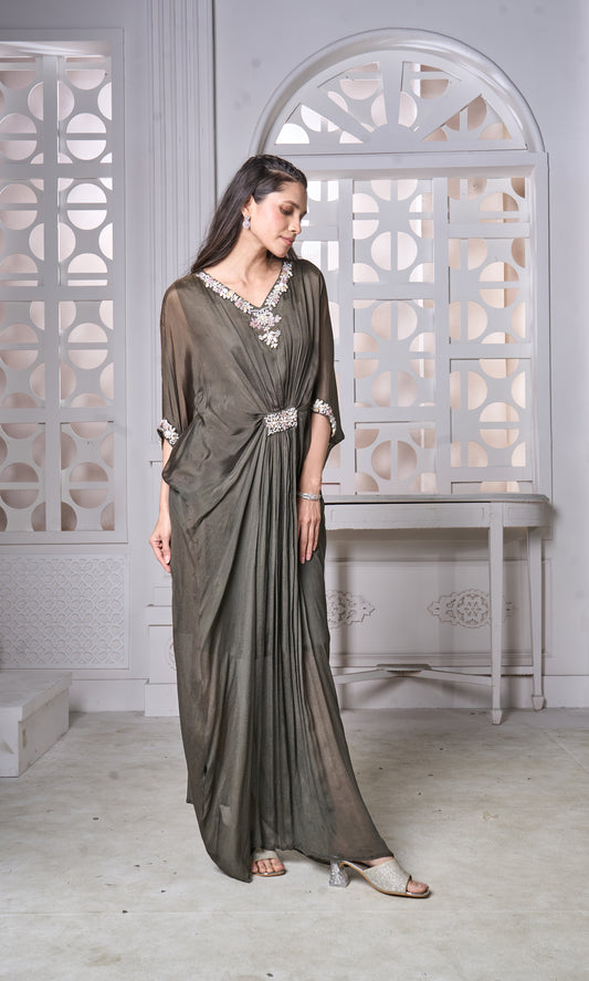 Brown Kundan Cocktail Saree